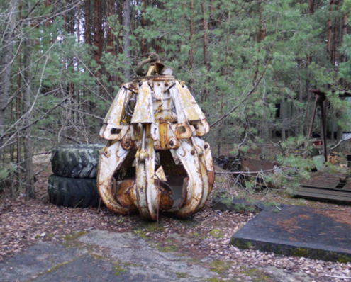 брошенной техники и, пожалуй, самый сильный экспонат — ковш.